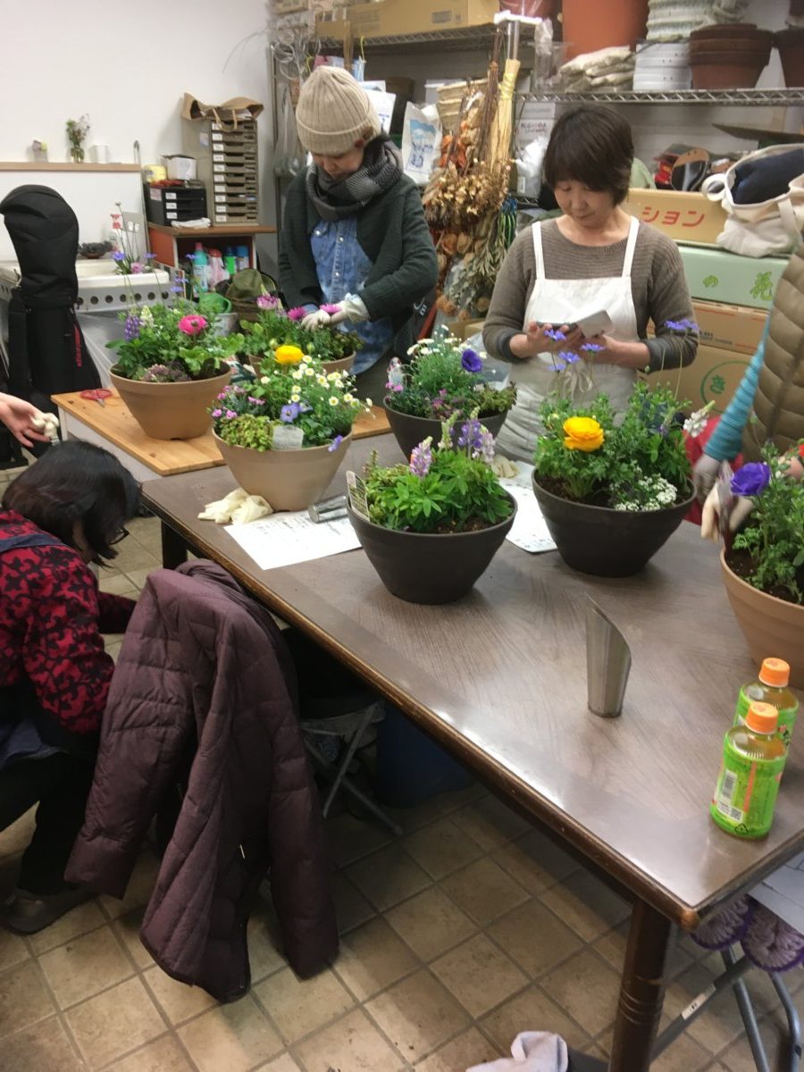 2月の寄せ植え教室、無事に終わりました。