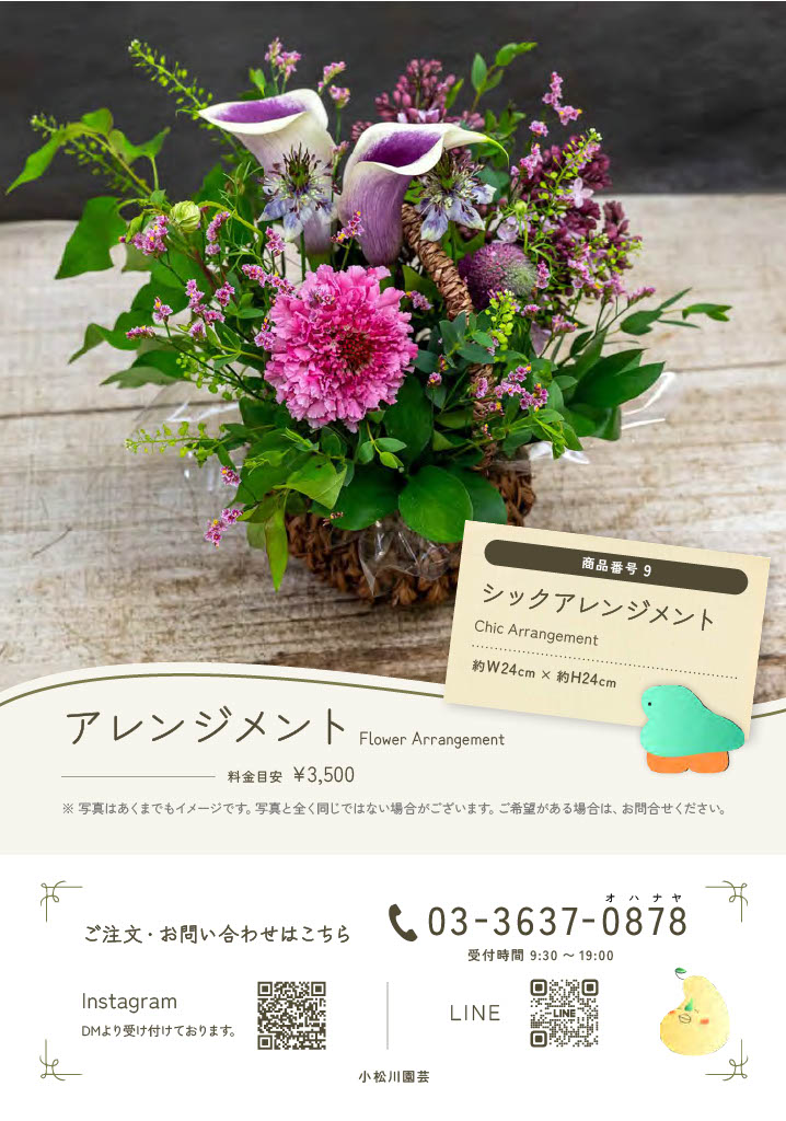 定番のカーネーションはもちろん、華やかなバラのセットや、おしゃれなブーケなど、贈る方のイメージに合わせて選べる全9商品をご用意しております。