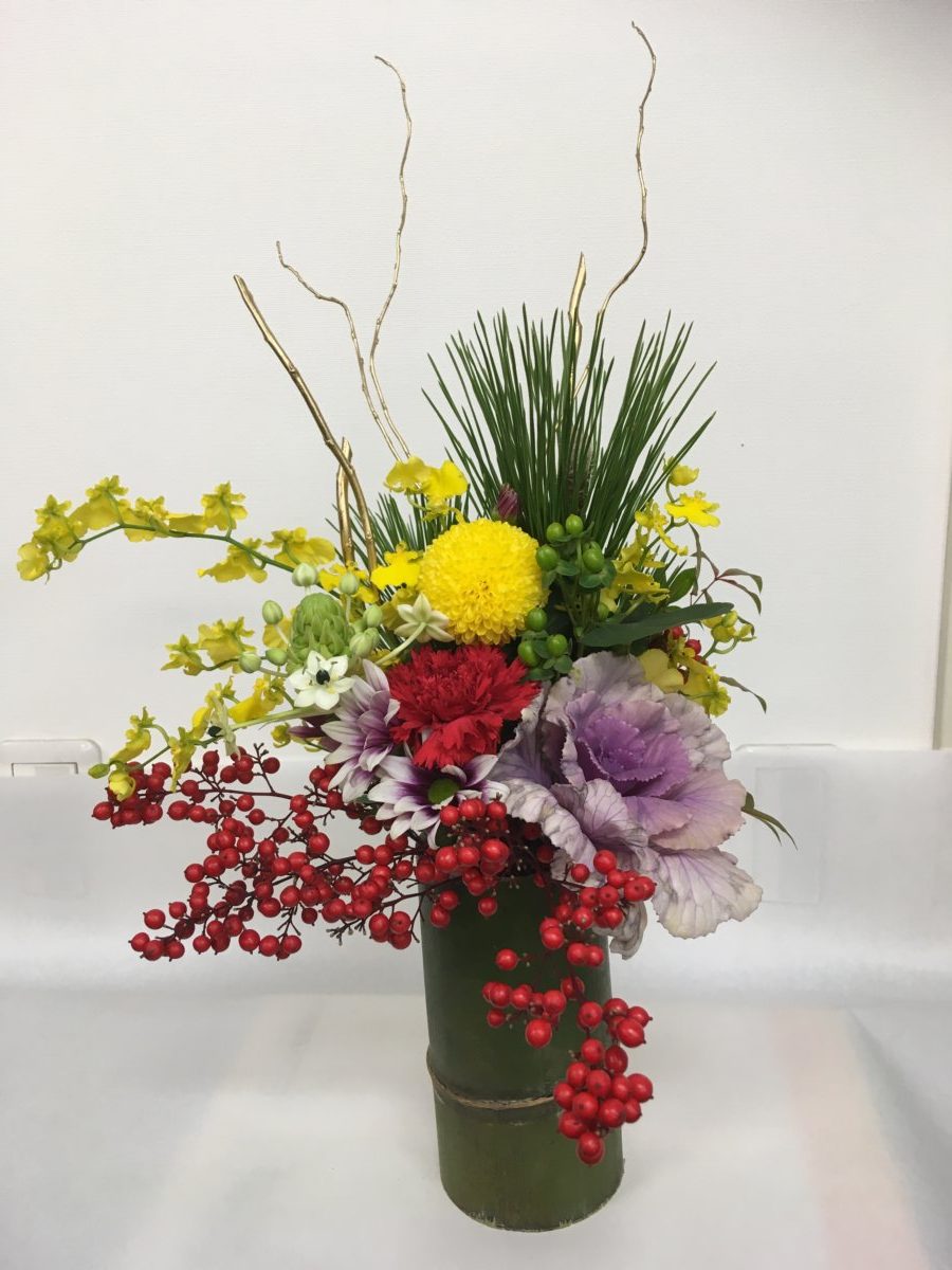 竹筒アレンジメント、これさえあれば一気にお正月感増します。